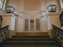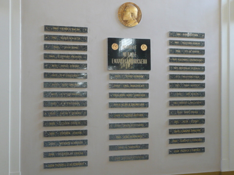Praha 2, Nové Město, Albertov 2038/6, podesta schodiště mezi 1. a 2. patrem budovy Přírodovědecké fakulty UK, - pamětní portrétní medailon nad mramorovou deskou s textem : " NOSITELÉ MEDAILE EMANUELA BOŘICKÉHO ", součást doplňovaného památníku se jmény nositelů této medaile.