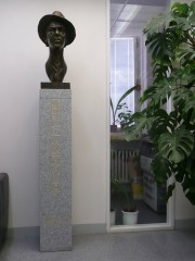 Praha 5, Hlubočepy, Kříženeckého nám. 322/5, filmové ateliéry Barrandov, recepce v hlavní budově, - busta na kamenném pilíři s nápisem : MARTIN FRIČ.